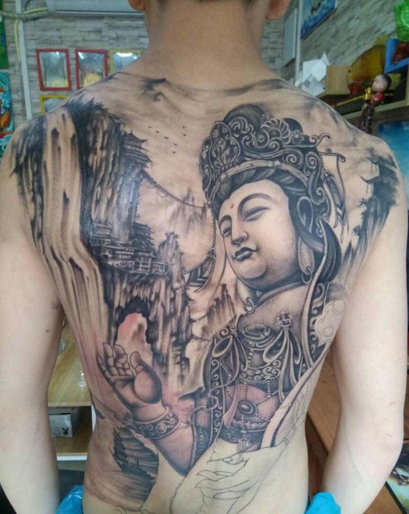 满背菩萨纹身图片