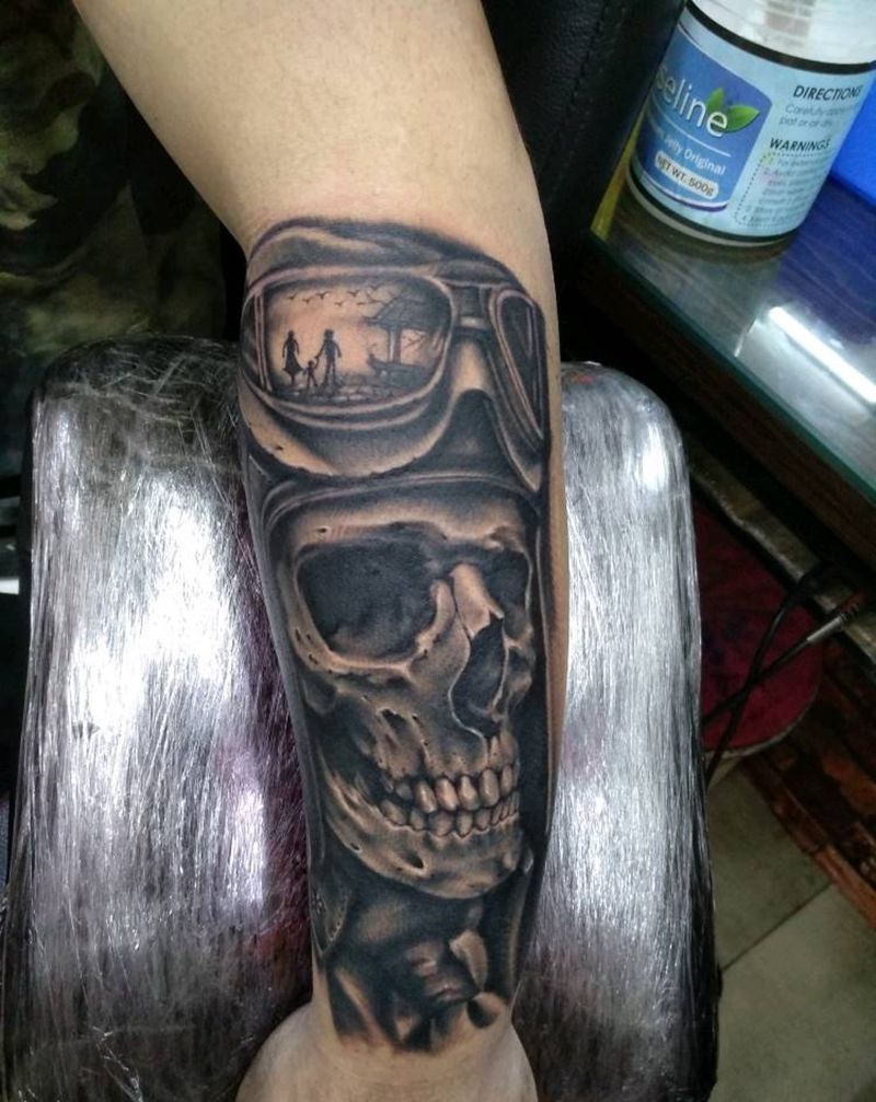 当前位置: 首页 >广东省中山市纹身店-精艺纹身纹身图案>小臂半侧骷髅纹身图片