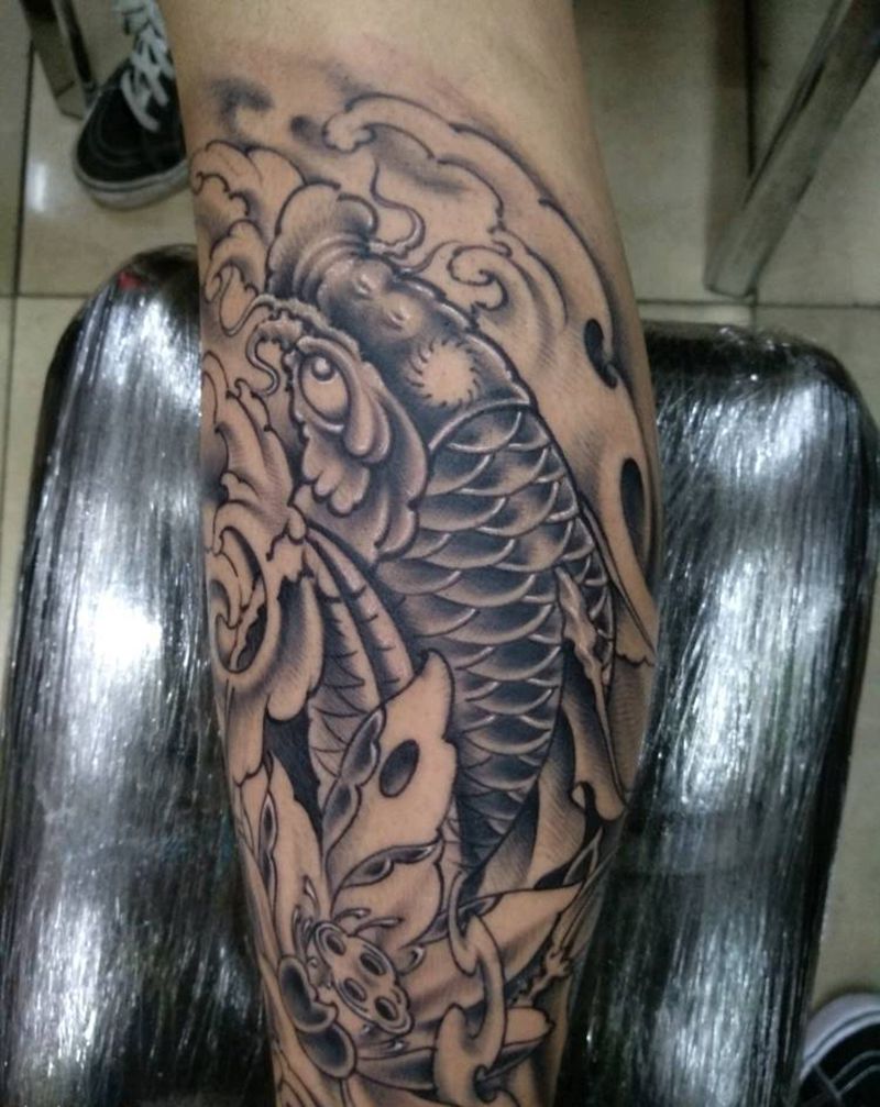• T网红王老大花腿龙纹身图片_腿部新传统纹身图案
