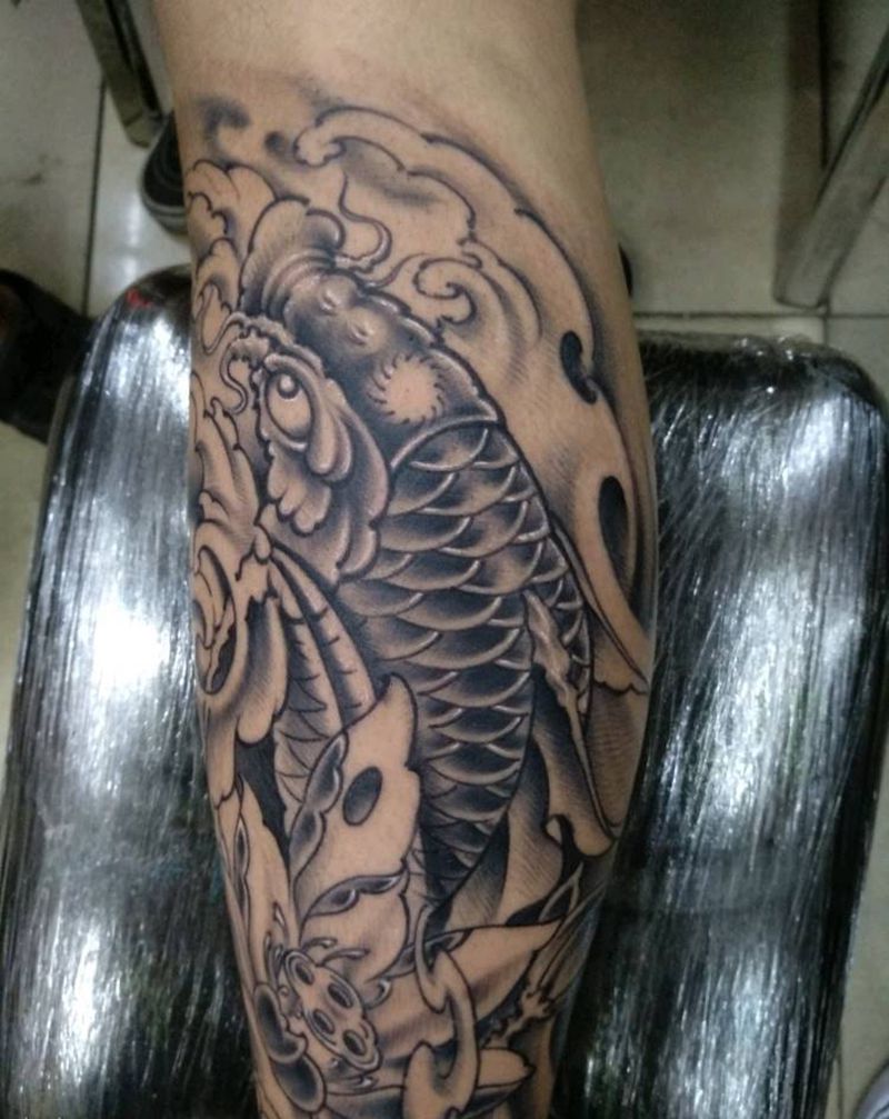 • T网红王老大花腿龙纹身图片_腿部新传统纹身图案
