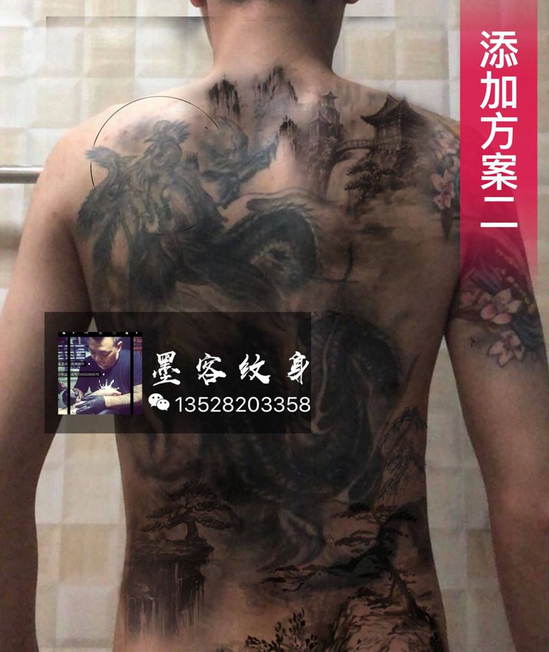 黑灰满背纹身图案