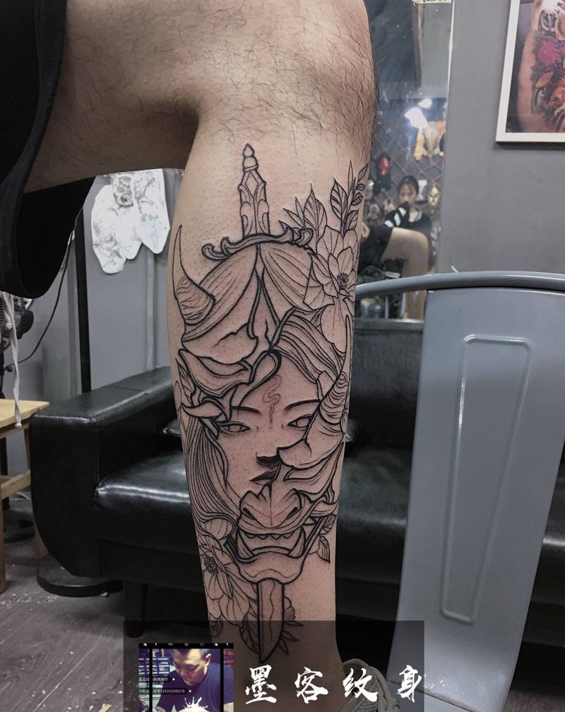 般若纹身图片_手臂腿部新传统待上色纹身图案