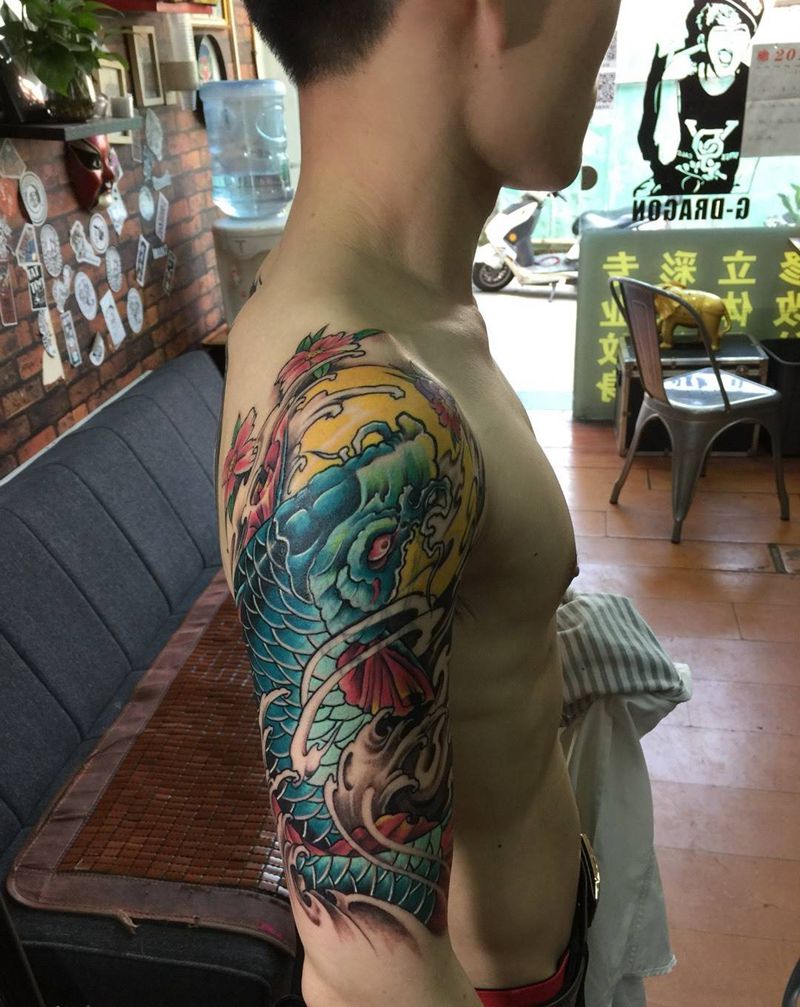 当前位置: 首页 >广东省中山市纹身店-墨客纹身刺青纹身图案>彩色鲤鱼纹身图片