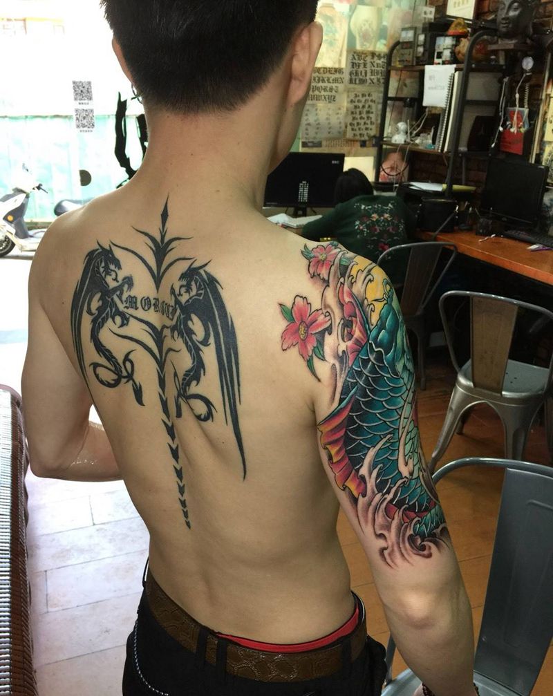 当前位置: 首页 >广东省中山市纹身店-墨客纹身刺青纹身图案>彩色鲤鱼纹身图片