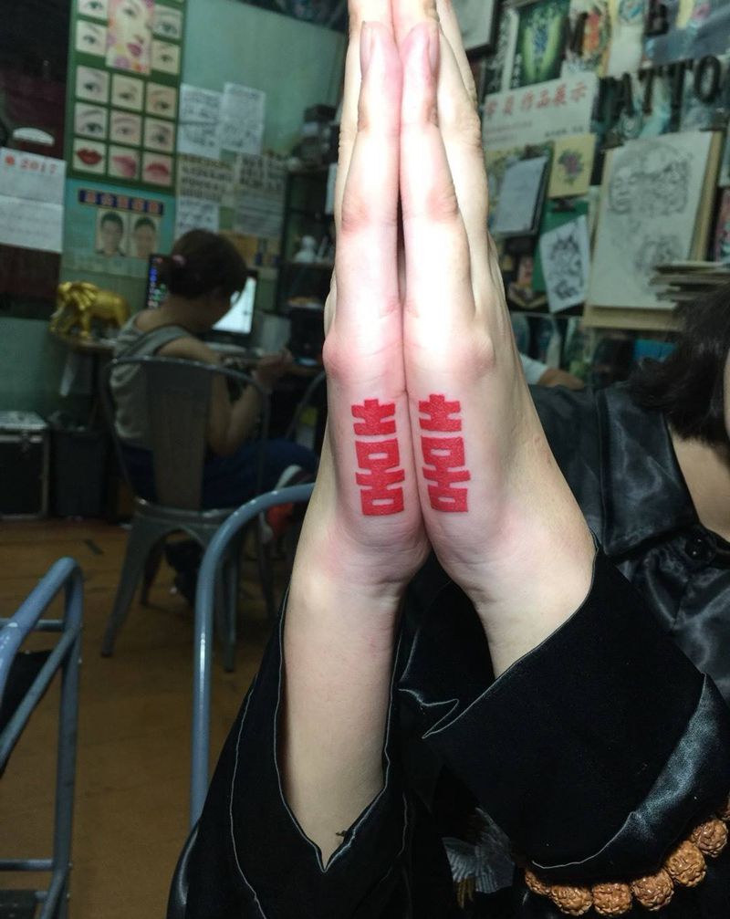 当前位置: 首页 >广东省中山市纹身店-墨客纹身刺青纹身图案>红双喜纹身图片