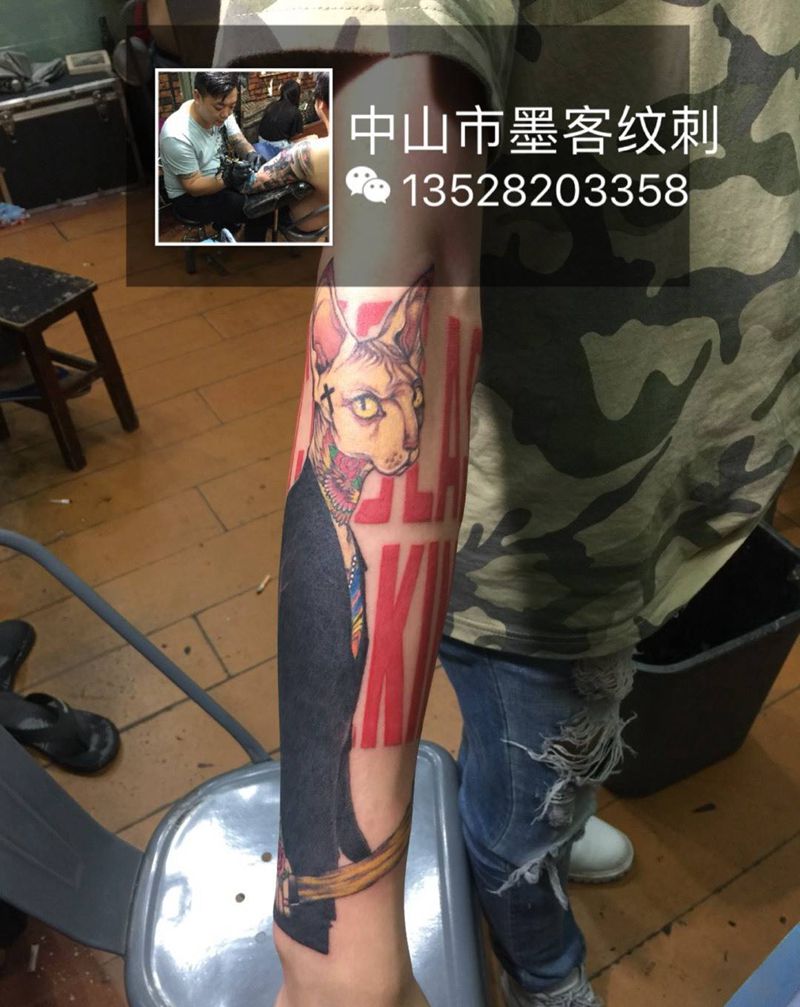 当前位置: 首页 >广东省中山市纹身店-墨客纹身刺青纹身图案>社会猫(小包臂)纹身图片