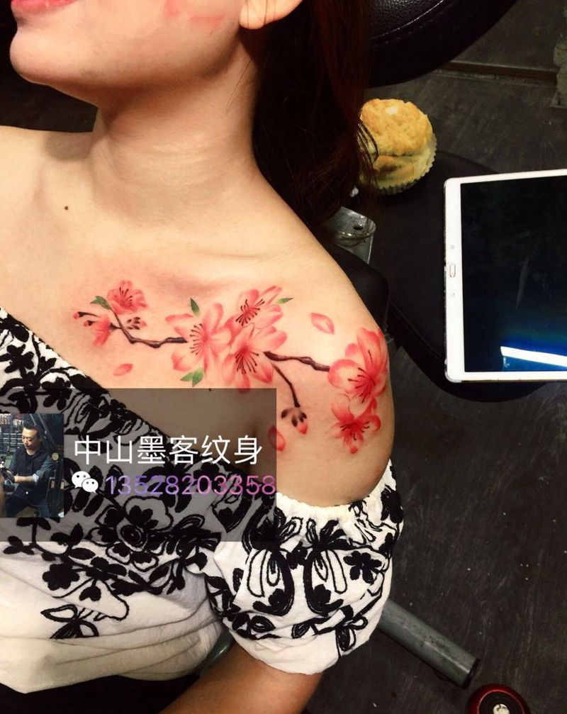 • 女性大花胸纹身_43张霸气漂亮的女性大花胸纹身图案作品
