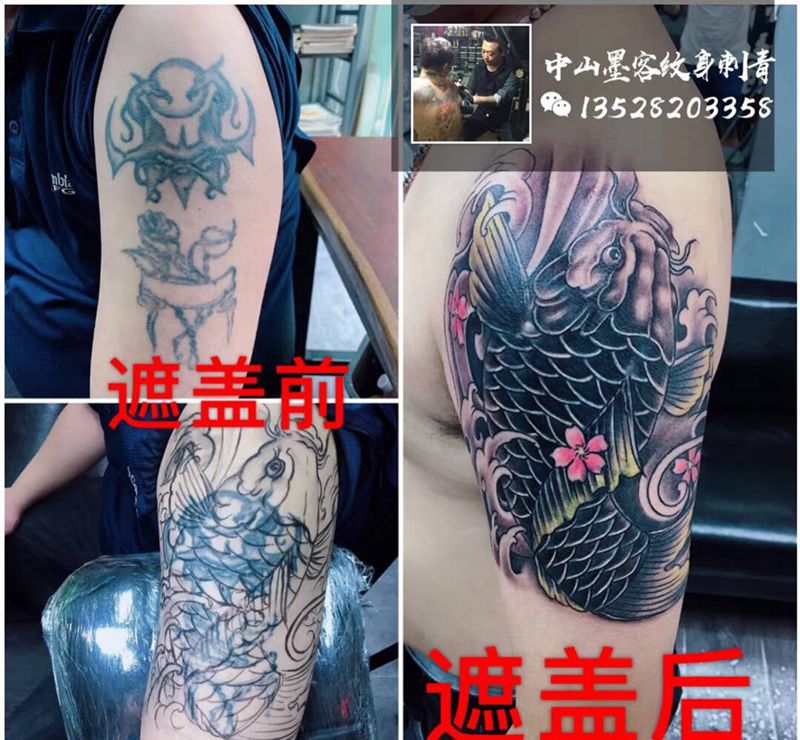 当前位置: 首页 >广东省中山市纹身店-墨客纹身刺青纹身图案>遮盖旧图纹身图片_胸部手臂新传统纹身图案
