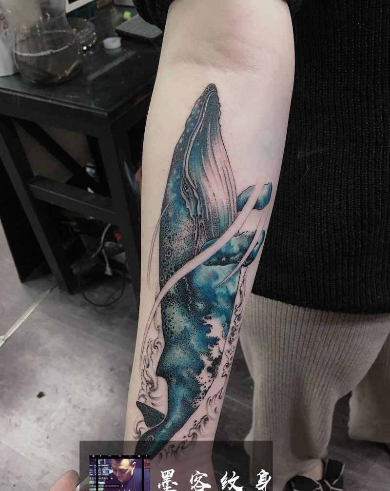 当前位置: 首页 >广东省中山市纹身店-墨客纹身刺青纹身图案>鲸鱼纹身图片_手臂腿部水彩纹身图案