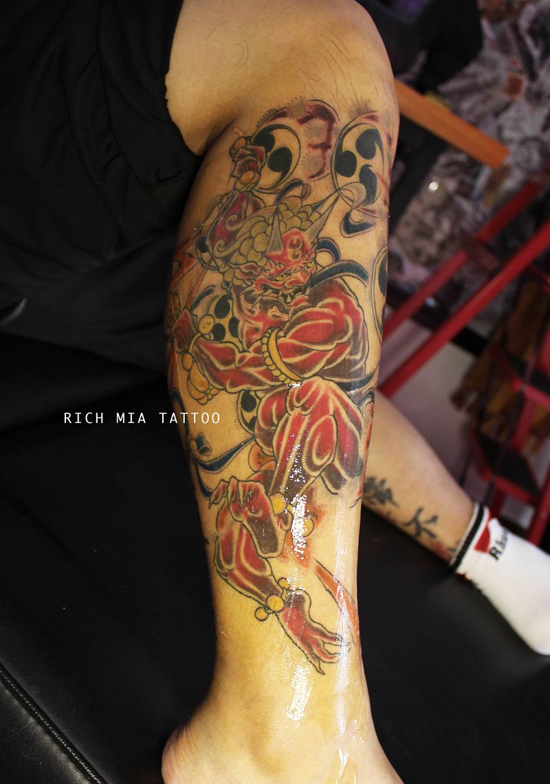 • T网红王老大花腿龙纹身图片_腿部新传统纹身图案