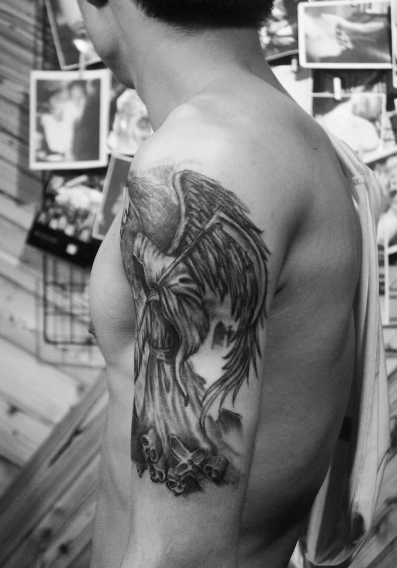 • 纹身吧推荐的披肩图腾半胛纹身图案作品展示