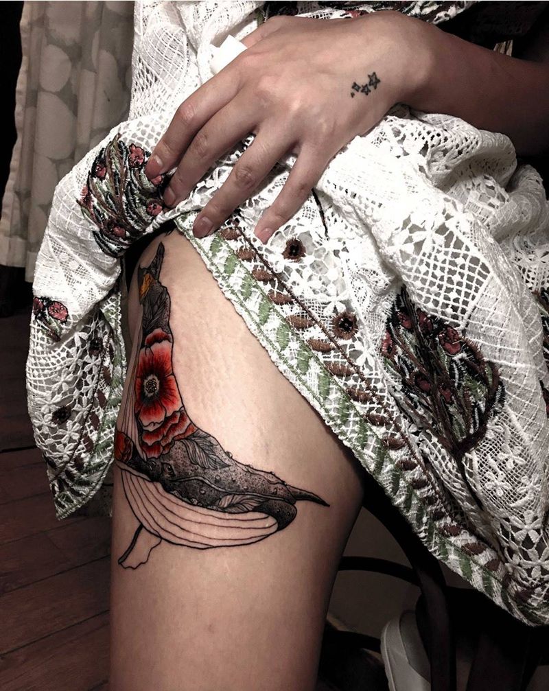 • 女性大花胸纹身_43张霸气漂亮的女性大花胸纹身图案作品