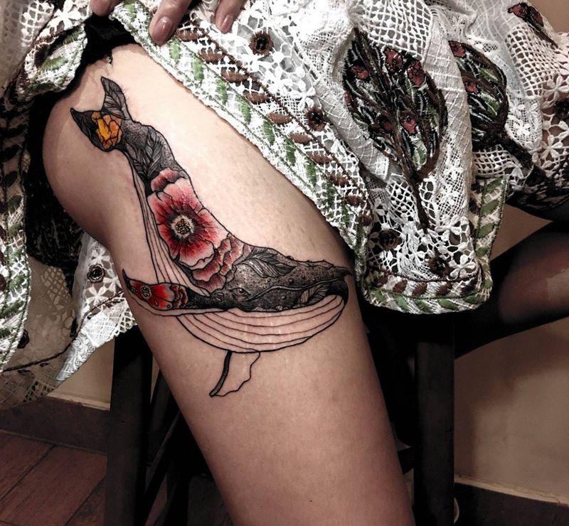 • 女性大花胸纹身_43张霸气漂亮的女性大花胸纹身图案作品