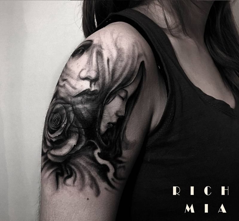 • 纹身吧推荐的披肩图腾半胛纹身图案作品展示