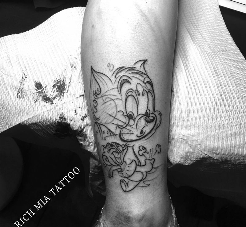 • T包小腿吹火男+阿多福纹身图片_腿部老传统新传统吹火男阿