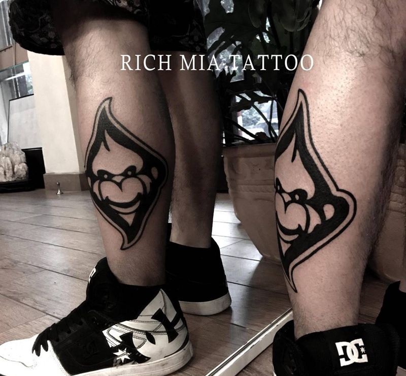 • T包小腿吹火男+阿多福纹身图片_腿部老传统新传统吹火男阿