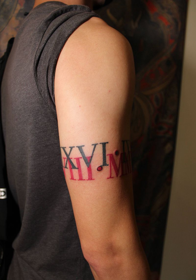 • T家庭图,一家四口生日纪念!纹身图片_手臂纹身图案