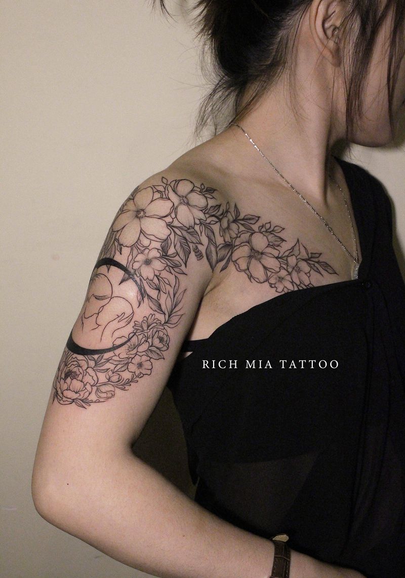 • 女性大花胸纹身_43张霸气漂亮的女性大花胸纹身图案作品
