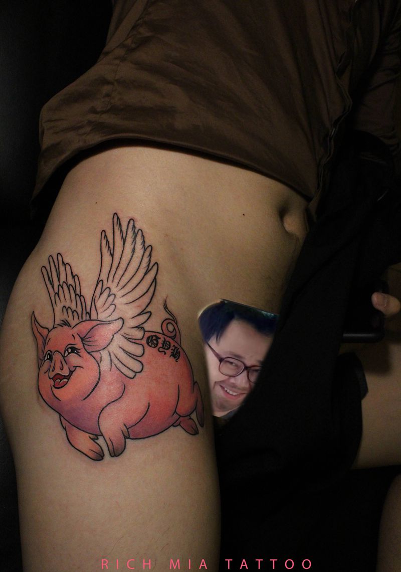 • T网红王老大花腿龙纹身图片_腿部新传统纹身图案