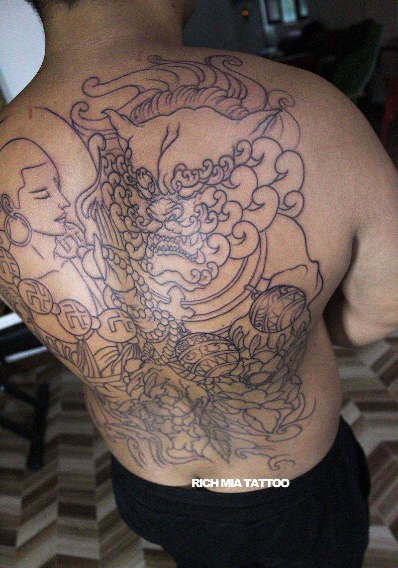 • 黑灰满背纹身图案