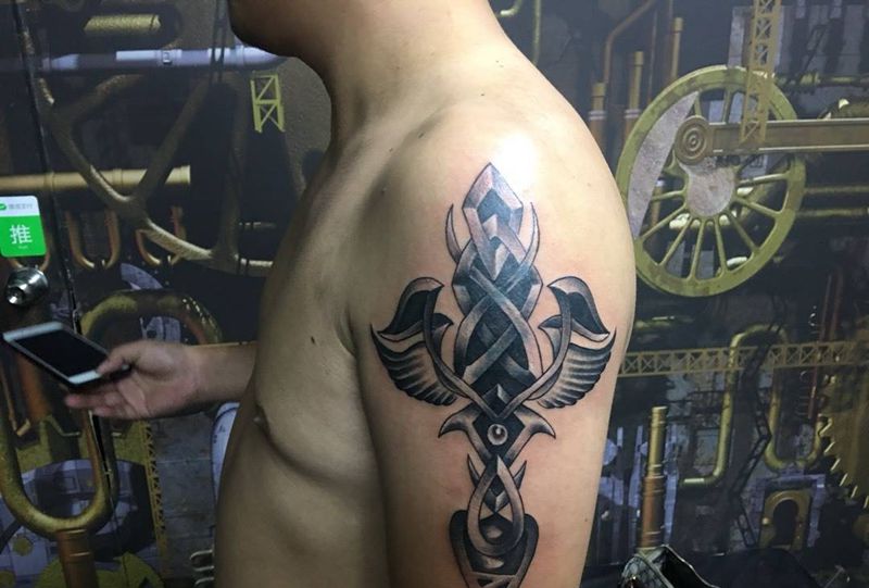 • 纹身吧推荐的披肩图腾半胛纹身图案作品展示