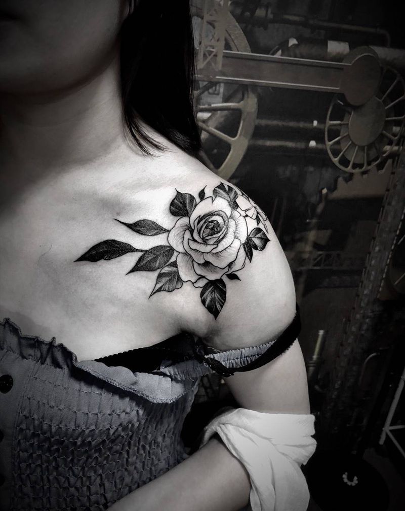 • 女性大花胸纹身_43张霸气漂亮的女性大花胸纹身图案作品