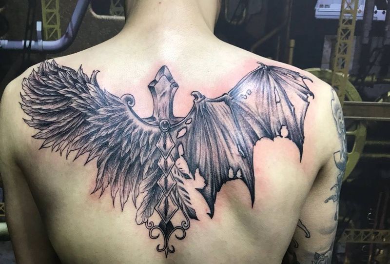 当前位置: 首页 >广东省潮州市纹身店-舞墨堂刺青纹身图案>天使与恶魔纹身图片