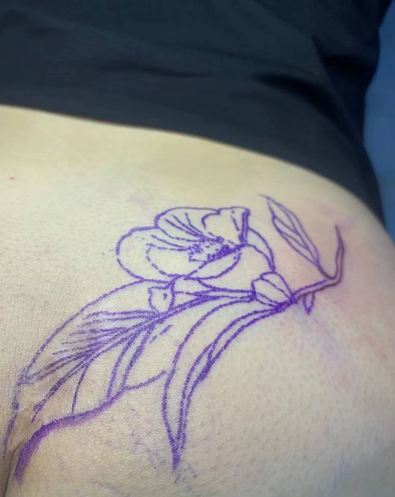 遮盖疤痕纹身图片_臀部水彩纹身图案
