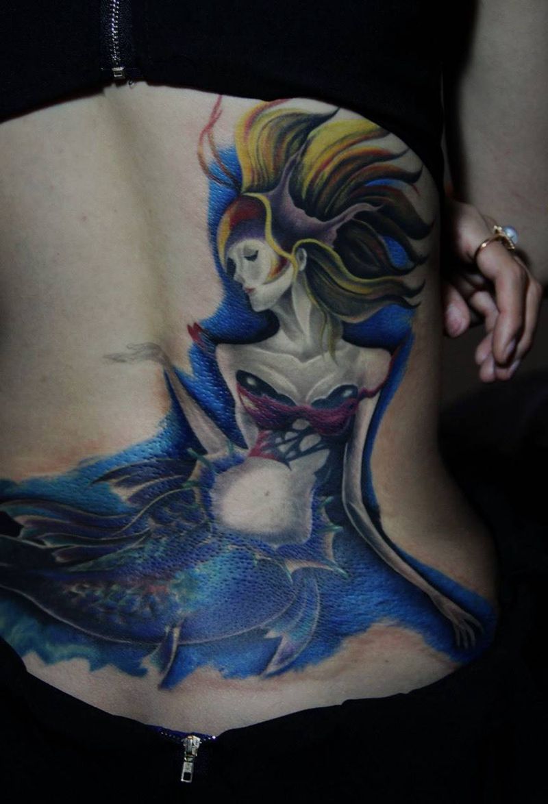 美人鱼纹身图片_成品臀部腰部欧美人物纹身图案