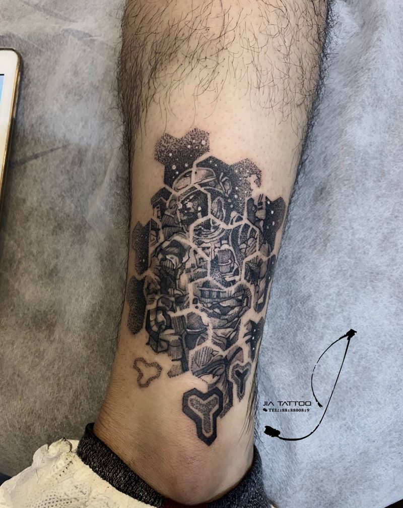 宇航员纹身图片_腿部脚部点刺纹身图案