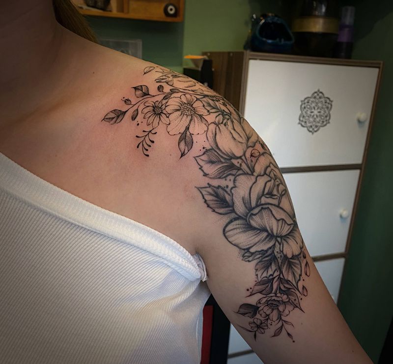 素花 添加修改纹身图片_肩部手部点刺纹身图案