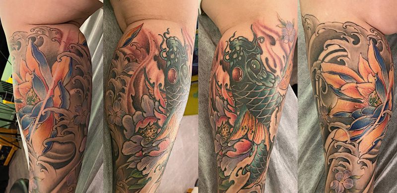 鲤鱼添加修改纹身图片_腿部脚部新传统水彩纹身图案