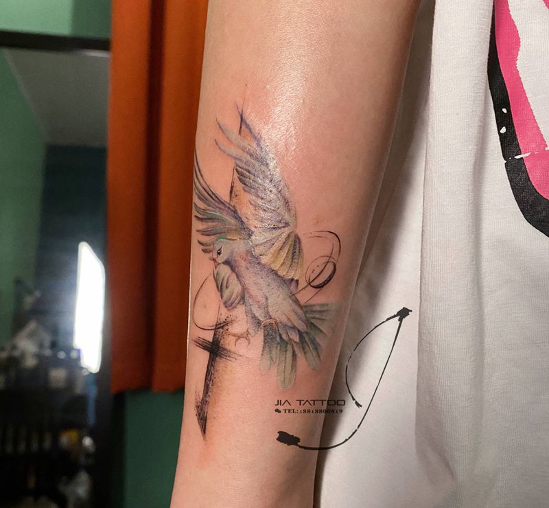 当前位置: 首页 >广东省中山市纹身店-紋藝閣纹身图案>鸽子,原创纹身图片_手臂手部水彩纹身图案
