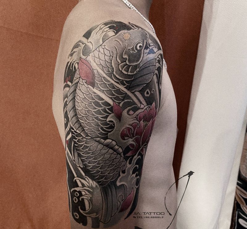 老传统鲤鱼纹身图片_手臂手部老传统纹身图案