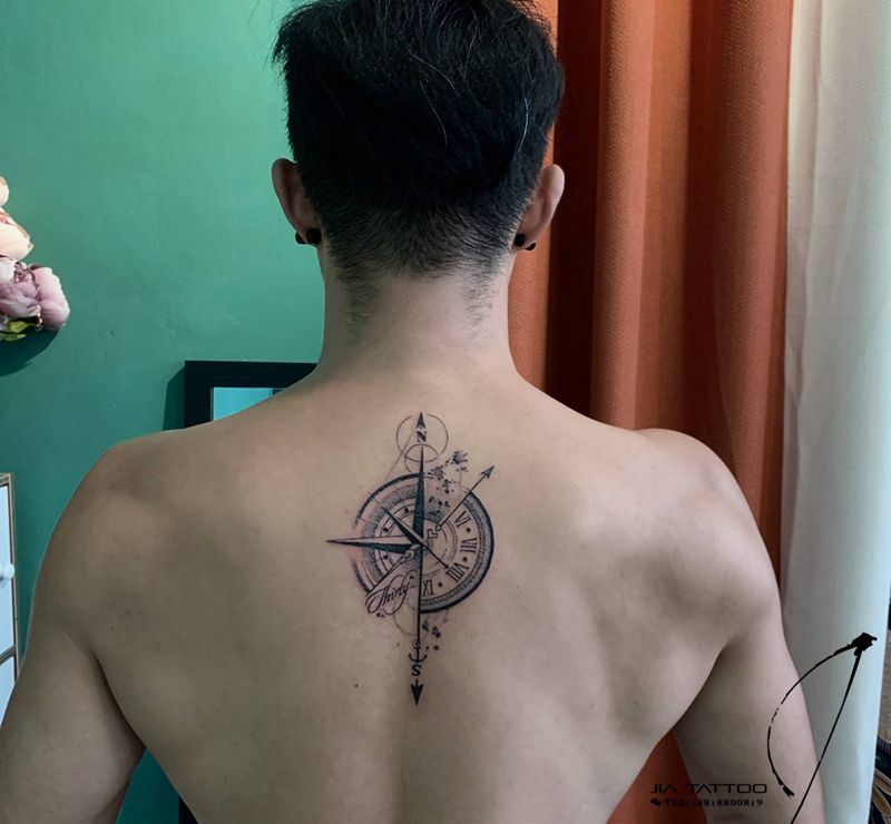 当前位置: 首页 >广东省中山市纹身店-紋藝閣纹身图案>指南针纹身图片_背部几何纹身图案