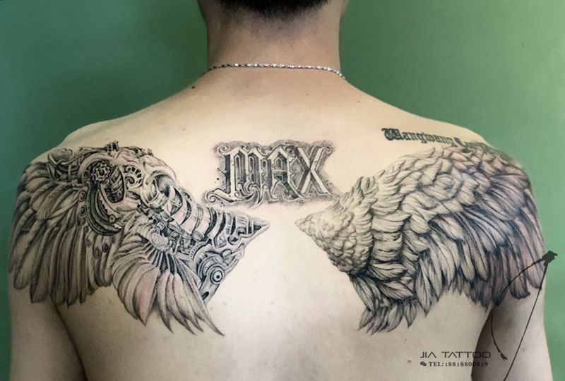 翅膀纹身图片_肩部背部欧美写实纹身图案