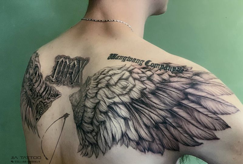 当前位置: 首页 >广东省中山市纹身店-紋藝閣纹身图案>翅膀纹身图片_肩部背部欧美写实纹身图案