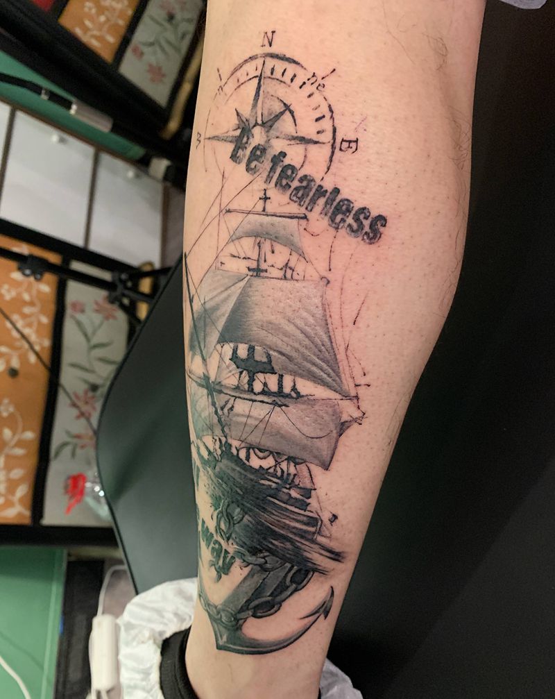 当前位置: 首页 >广东省中山市纹身店-紋藝閣纹身图案>帆船遮盖纹身图片_腿部脚部水墨水彩纹身图案