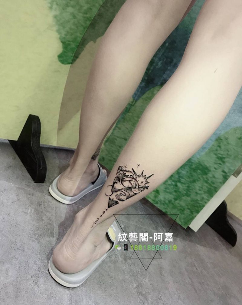 • T包小腿吹火男+阿多福纹身图片_腿部老传统新传统吹火男阿