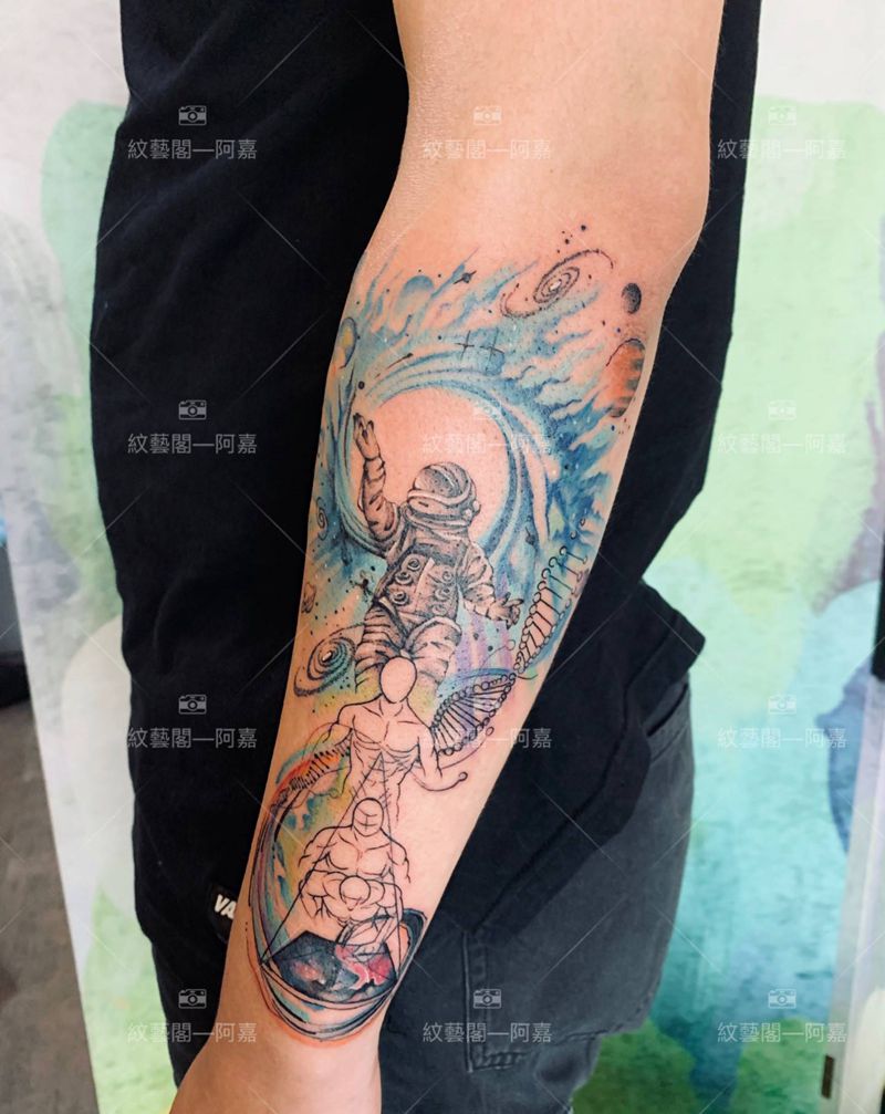 宇航员、大空纹身图片_手部手臂水彩纹身图案