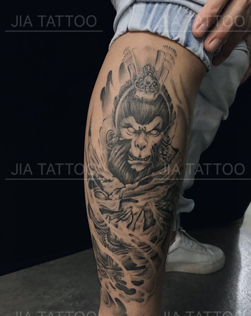 孙悟空纹身图片_腿部脚部老传统新传统纹身图案