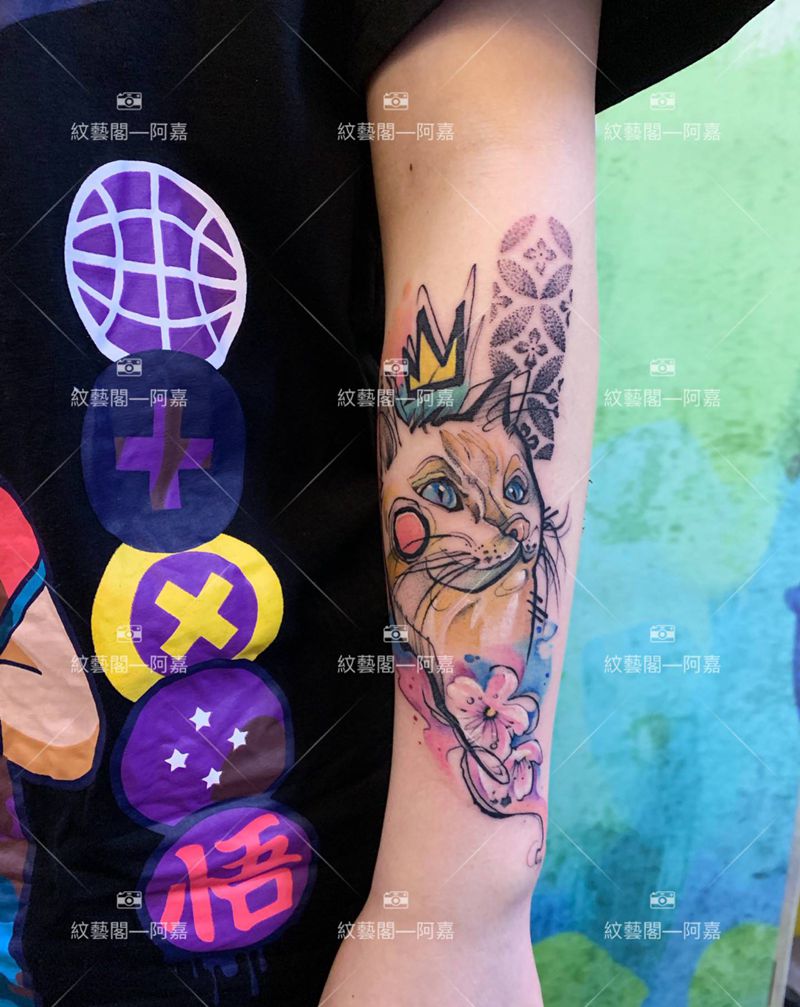 当前位置: 首页 >广东省中山市纹身店-紋藝閣纹身图案>猫纹身图片_手部手臂水彩Old School纹身图案