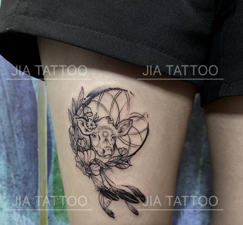 捕梦网纹身图片_腿部脚部点刺水墨纹身图案