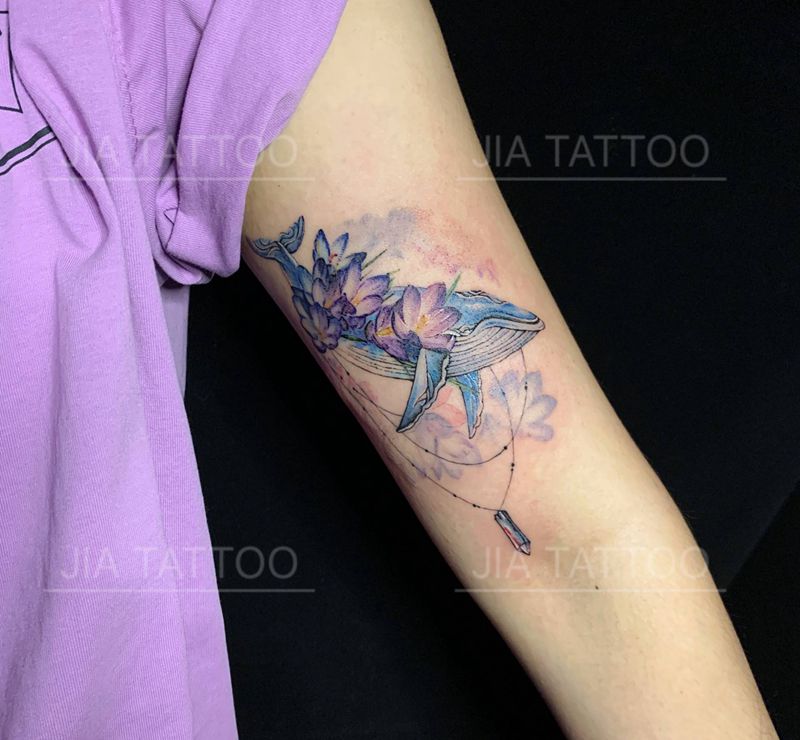 水彩、鲸鱼纹身图片_手臂手部水彩水墨纹身图案