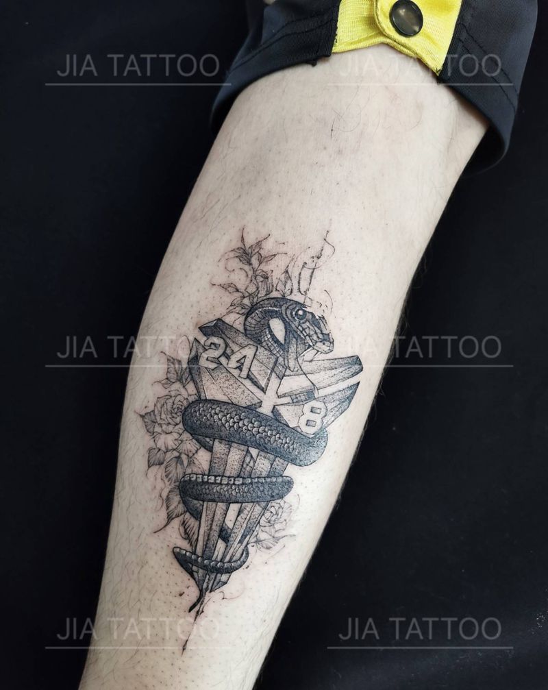 当前位置: 首页 >广东省中山市纹身店-紋藝閣纹身图案>科比、曼巴精神纹身图片_腿部脚部欧美写实点刺纹身图案