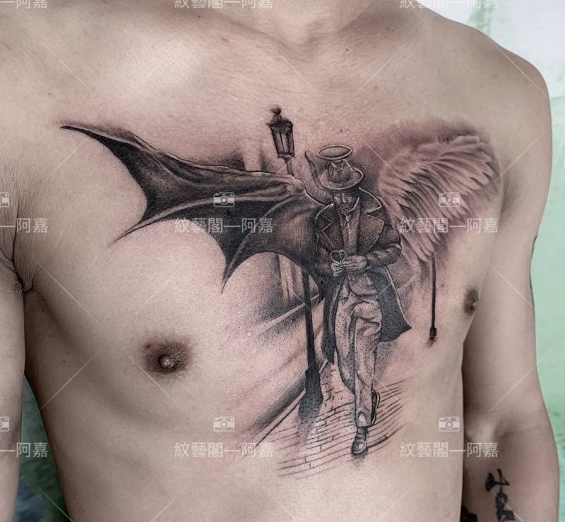 当前位置: 首页 >广东省中山市纹身店-紋藝閣纹身图案>恶魔天使纹身图片_腹部胸部欧美写实纹身图案