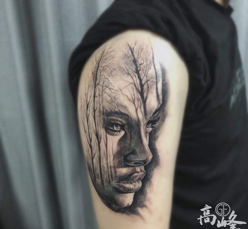 • 纹身吧推荐的披肩图腾半胛纹身图案作品展示