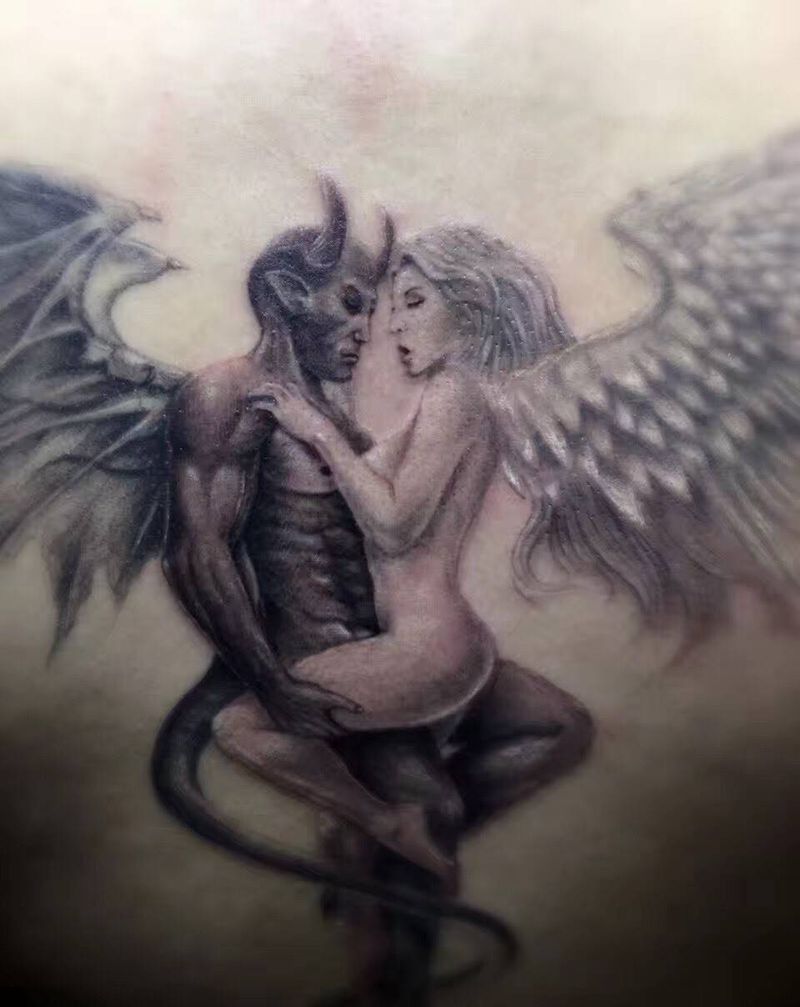 恶魔天使纹身图片_欧美鬼神成品背部纹身图案