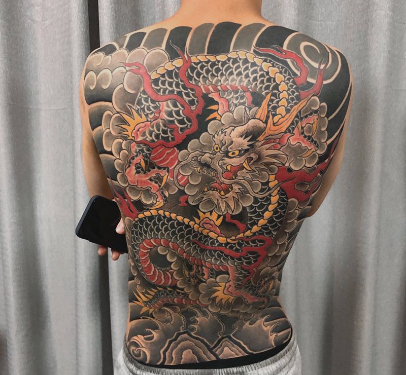 • T云龙九郎纹身图片_背部老传统云龙九郎纹身图案