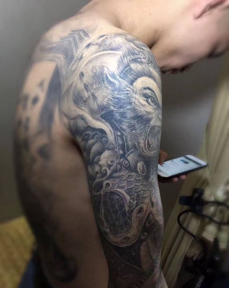 • T网红王老大花腿龙纹身图片_腿部新传统纹身图案